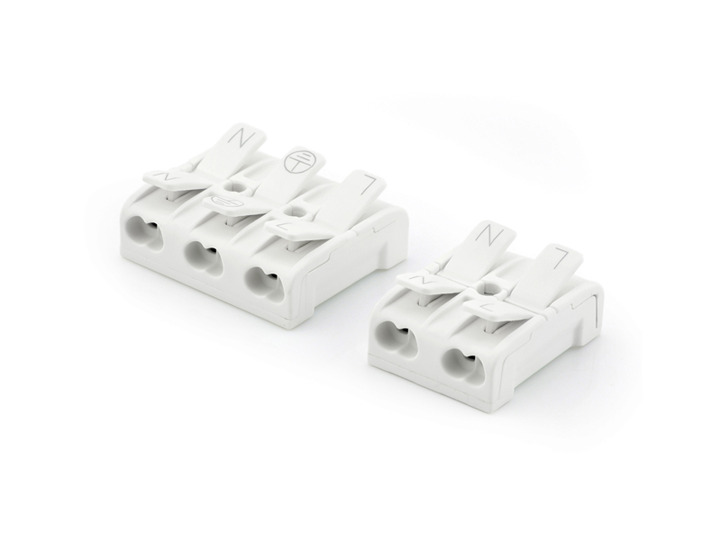 Güç kaynağı terminal modülü, lambaları ve diğer ekipmanları bağlamak için kullanılır. Aydınlatma, ev aletleri vb. için uygundurlar ve 0,75 ila 2,5 mm2 tek telli, çok telli ve ince çok telli kabloları bağlayabilirler. Çeşitli polar yamalar ve kelepçeler mevcuttur
